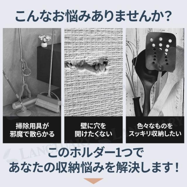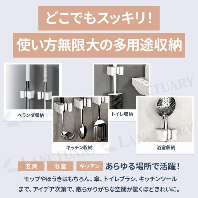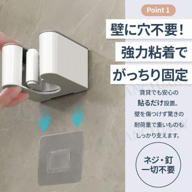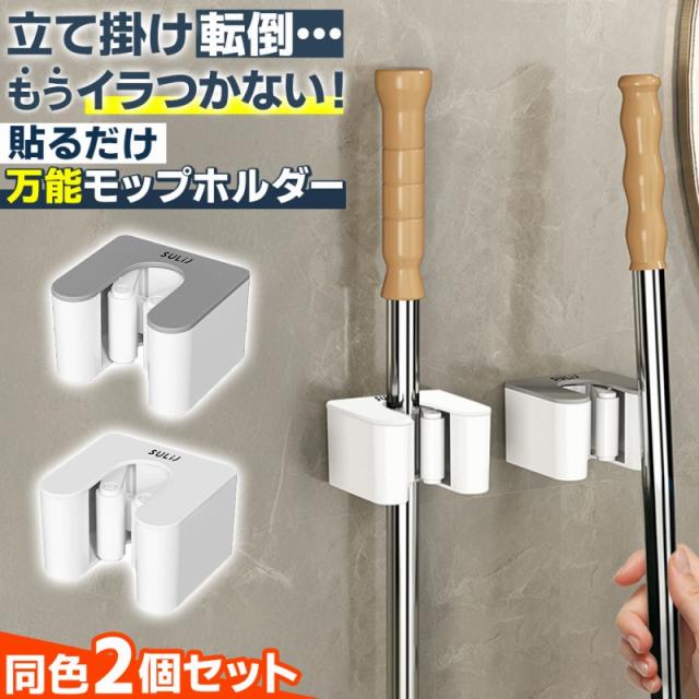 モップホルダー同色2個セット 壁掛け ほうきホルダー 粘着 強力 穴開けない 賃貸 シリコン 固定 傷つけない 玄関収納 浴室収納 キッチン収納 トイレ収納 多用途