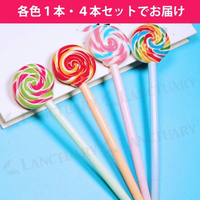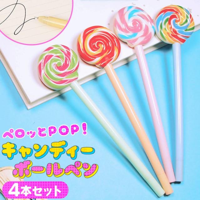 ボールペン 0.5mm 4本セット キャンディーペン ペロペロキャンディ ぐるぐるキャンディ おもしろペン 面白文具 ブラックペン 書きやすい 文房具 オフィス用品