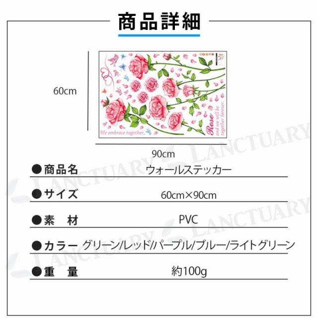 | 主な仕様 | 商品名:ウォールステッカー サイズ:60cm×90cm カラー:グリーン レッド パープル ブルー ライトグリーン 素材:PVC 重量:100g |