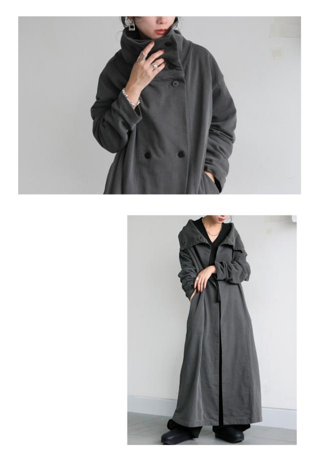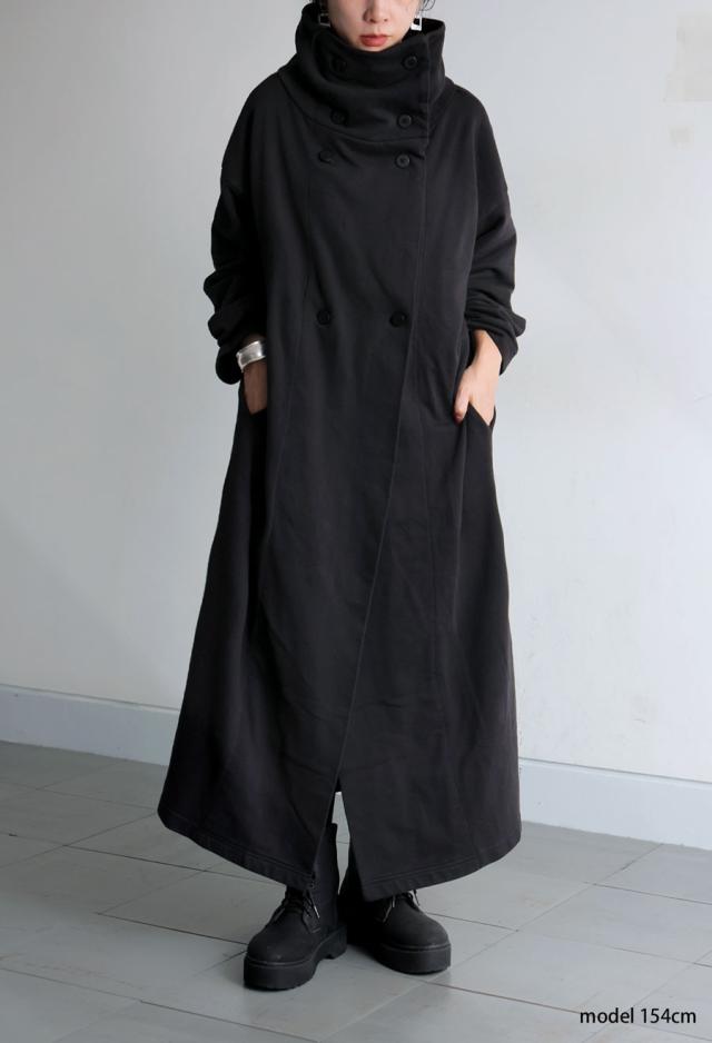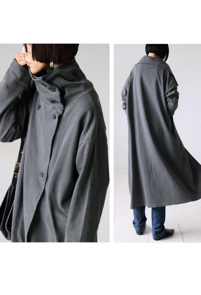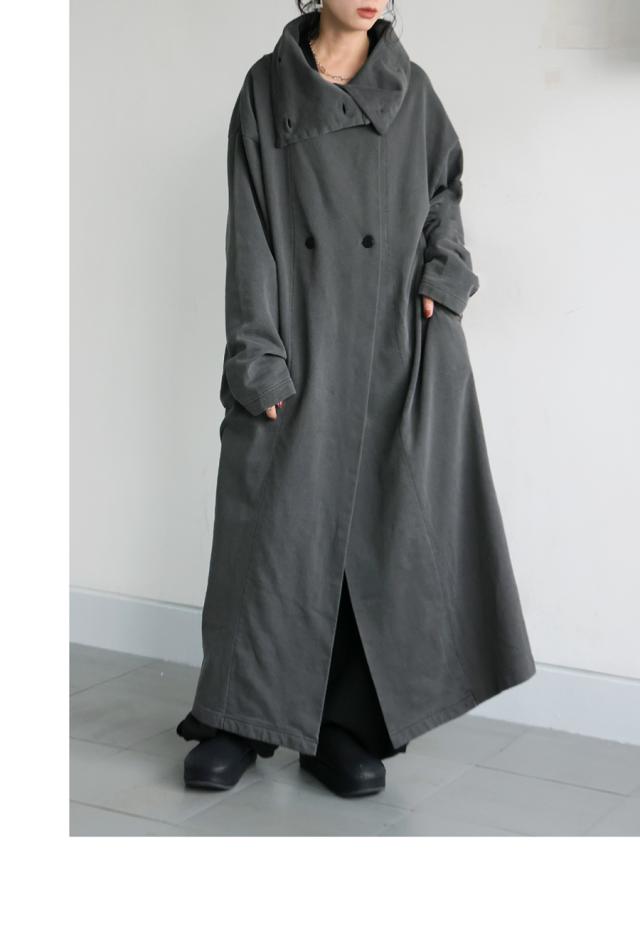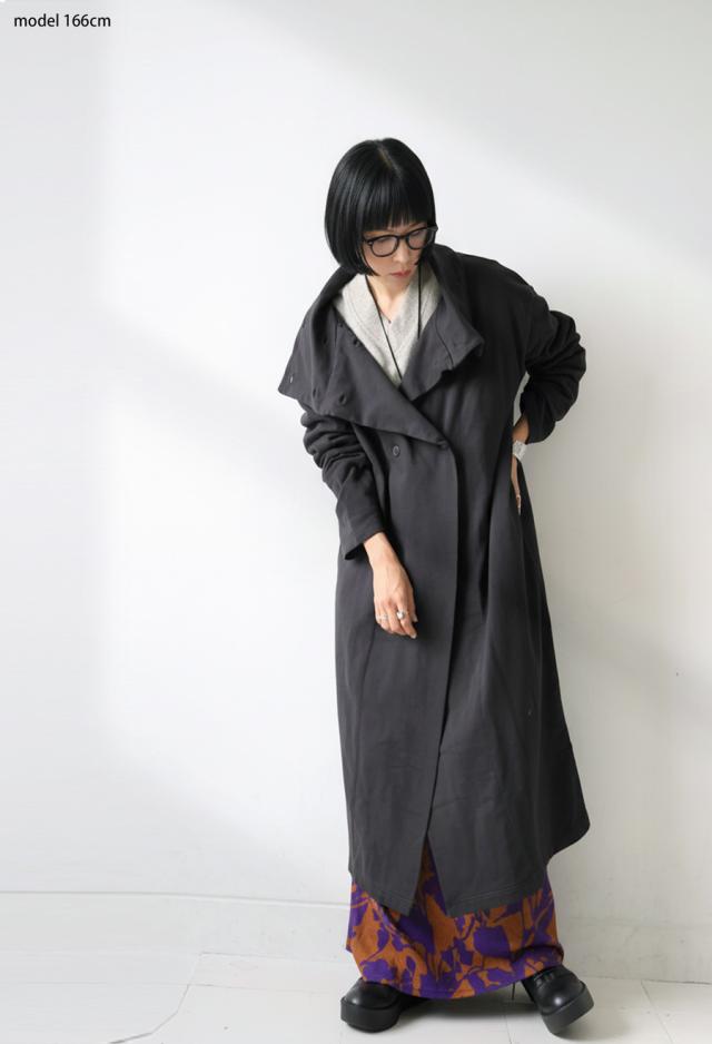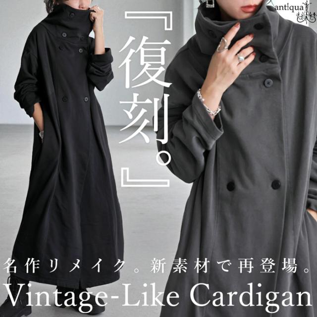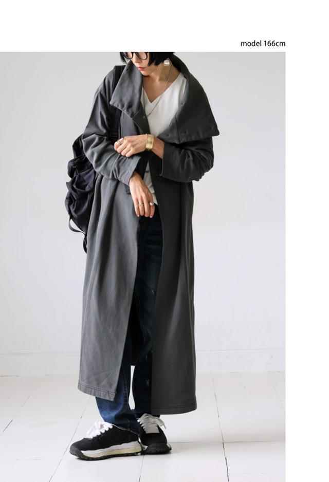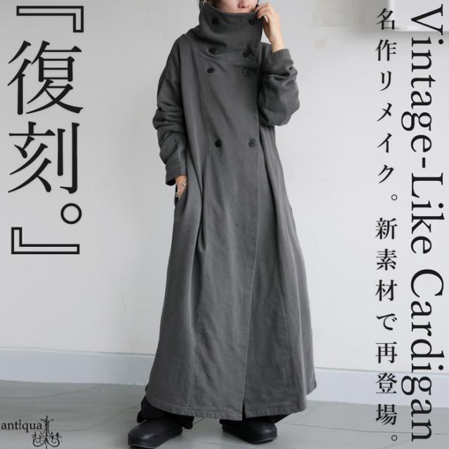 pn-00592 カーディガン コート ライトアウター ロング丈 綿100 綿 ピグメント加工 ヴィンテージ風 ハイネック 変形 ポケット付き アシンメトリー 着回し モード 大人 カジュアル