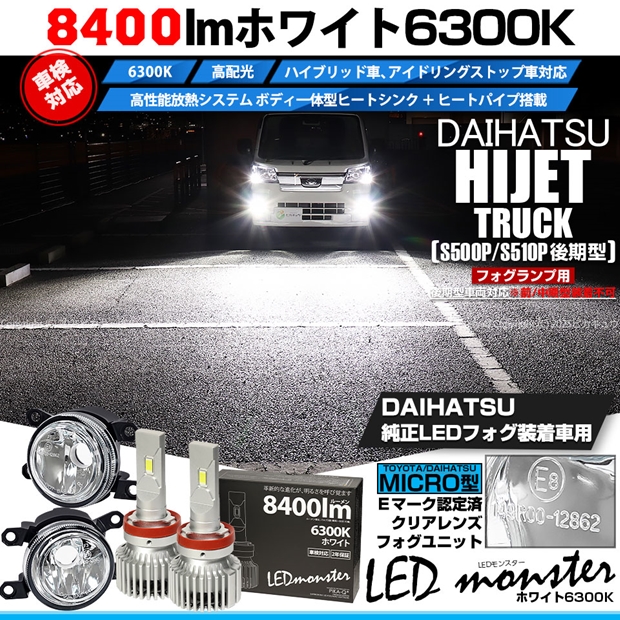 ダイハツ ハイゼットトラック (S500P/S510P 後期) 対応 H11 led MICRO LED MONSTER L8400 クリアガラスレンズ フォグランプキット 8400lm ホワイト 44-B-5