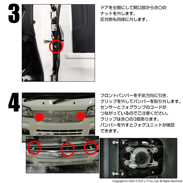 ◆当製品はハイゼットトラックS500P/S510P 後期対応品です。前期、中期はフォグランプの形状が異なるためご使用いただけません。