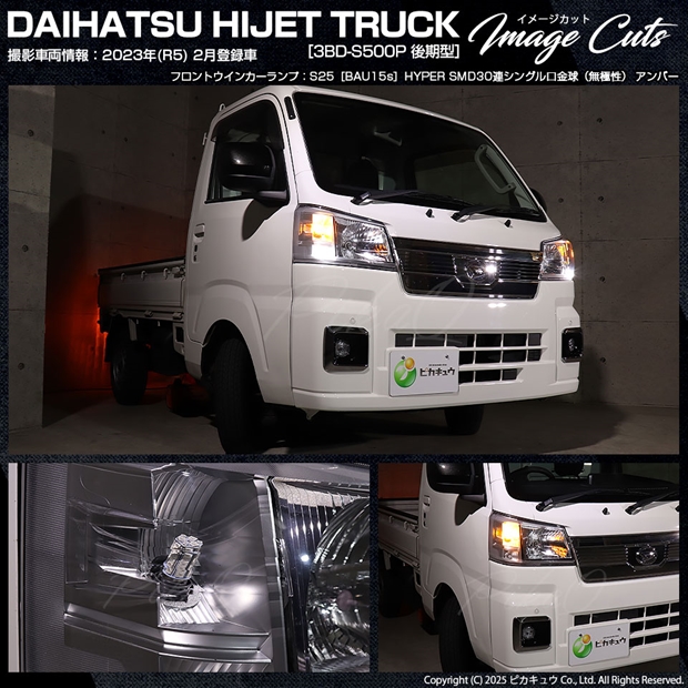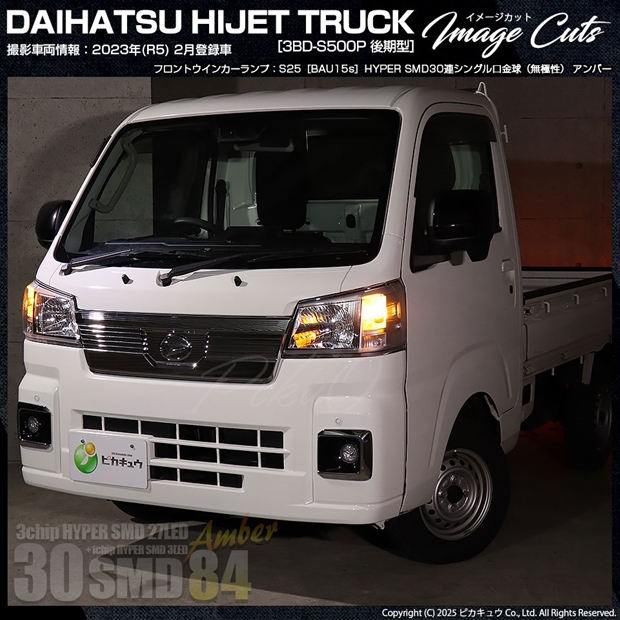 ピカキュウ,LED専門店,LEDバルブ,DC12V車,ハイブリッド車対応LEDバルブ,S25シングル,PY21W,150度,ウインカーランプ,アンバー,オレンジ,HYPER SMD30連シングル口金球,ダイハツ,DAIHATSU,ハイゼット,ハイゼットトラック,HIJET TRUCK,S500P,S510P