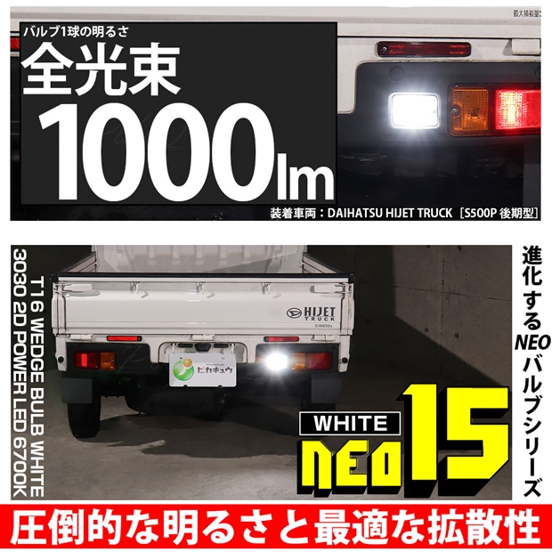 ダイハツ ハイゼットトラック (S500P/S510P 後期) 対応 バックランプ LEDバルブ T16 NEO15 全光束1000lm ホワイト 6700K 後退灯 1個 41-A-2