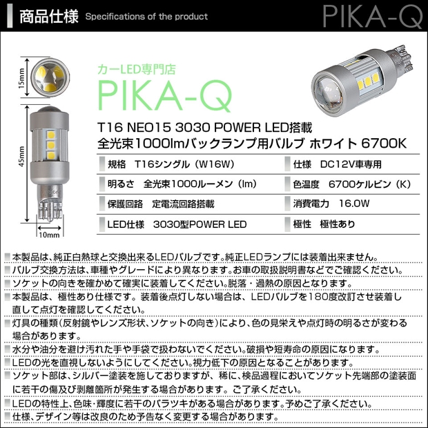 T16 NEO15 全光束1000lm バックランプ用LEDバルブ