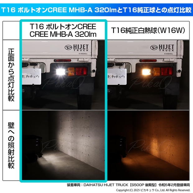 LED,ピカキュウ,LED専門店,LEDバルブ,CREE MHB-A搭載,T16ウェッジ,T16 NEW Bolt On CREE,ボルトオンCREE,320ルーメン,バックランプ,後退灯,ダイハツ,DAIHATSU,ハイゼット,ハイゼットトラック,HIJET TRUCK,S500P,S510P