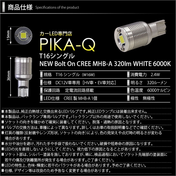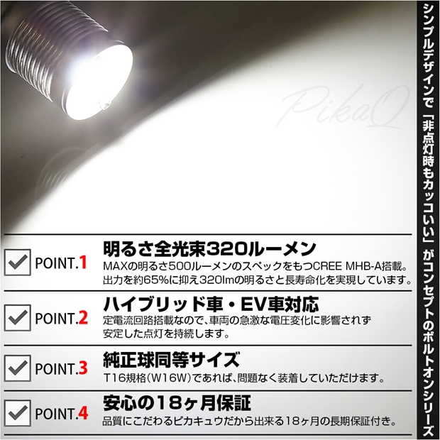 T16規格バックランプ専用LEDバルブ。ボルトオンCREEがリニューアルしました。