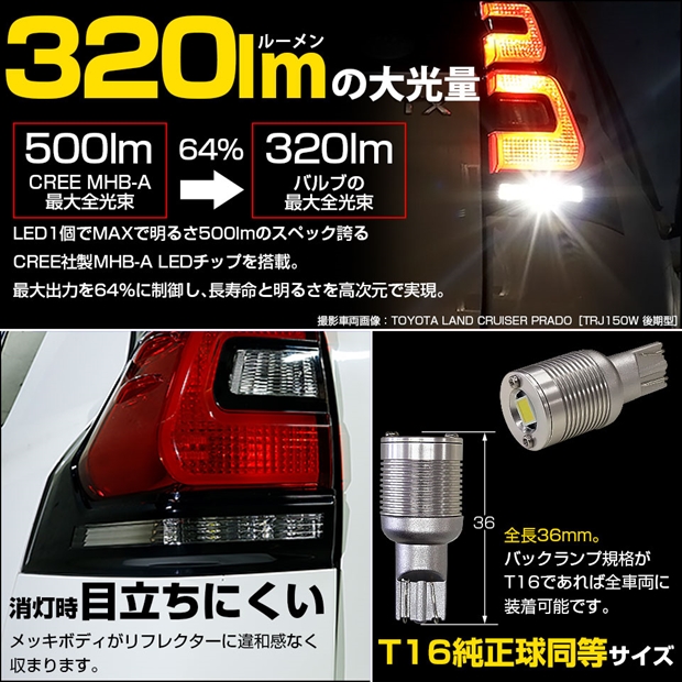 ダイハツ ハイゼットトラック (S500P/S510P 後期) 対応 バックランプ用LED T16 NEWボルトオンCREE MHB-A搭載 クールホワイト6000K 1個 5-C-4