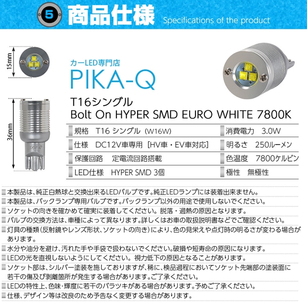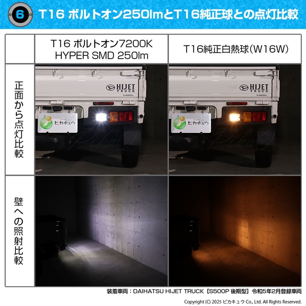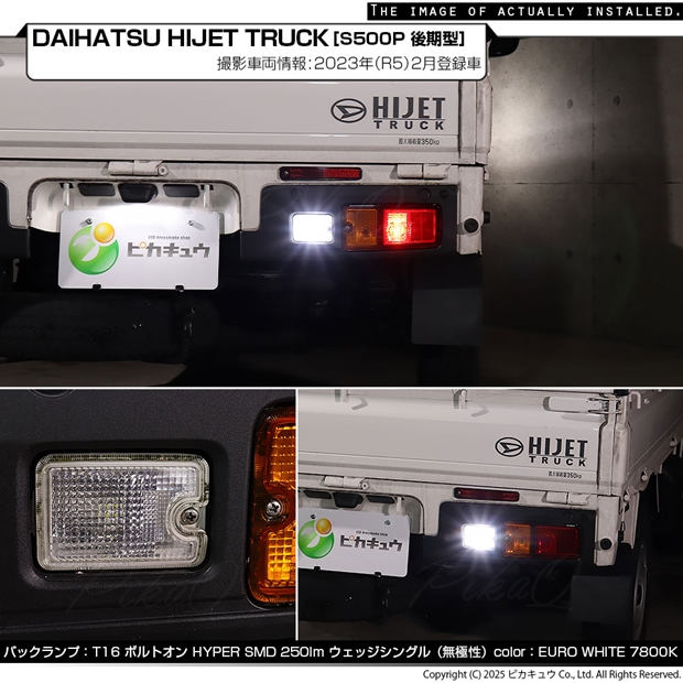 LED,ピカキュウ,LED専門店,LEDバルブ,T16ウェッジ,T16 NEW ボルトオンSMD,250ルーメン,蒼白色 7800K,青白色,EURO WHITE,ユーロホワイトバックランプ,後退灯,ダイハツ,DAIHATSU,ハイゼット,ハイゼットトラック,HIJET TRUCK,S500P,S510P