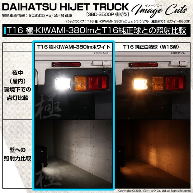 ダイハツ ハイゼットトラック (S500P/S510P 後期) 対応 バックランプ用LED T16 極-KIWAMI-(きわみ)380lm ウェッジシングル ホワイト6600K 1個 5-A-7