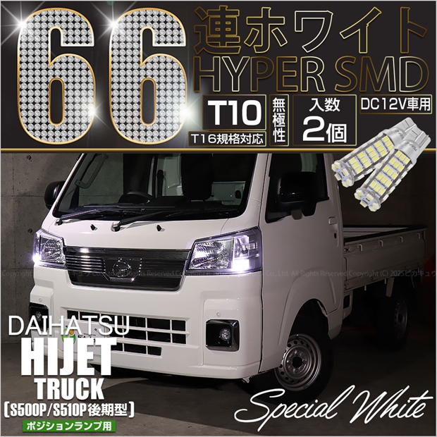 ダイハツ ハイゼットトラック (S500P/S510P 後期) 対応 ポジションランプ LED T10 HYPER SMD 66連ウェッジシングル球 ホワイト2個 3-A-8