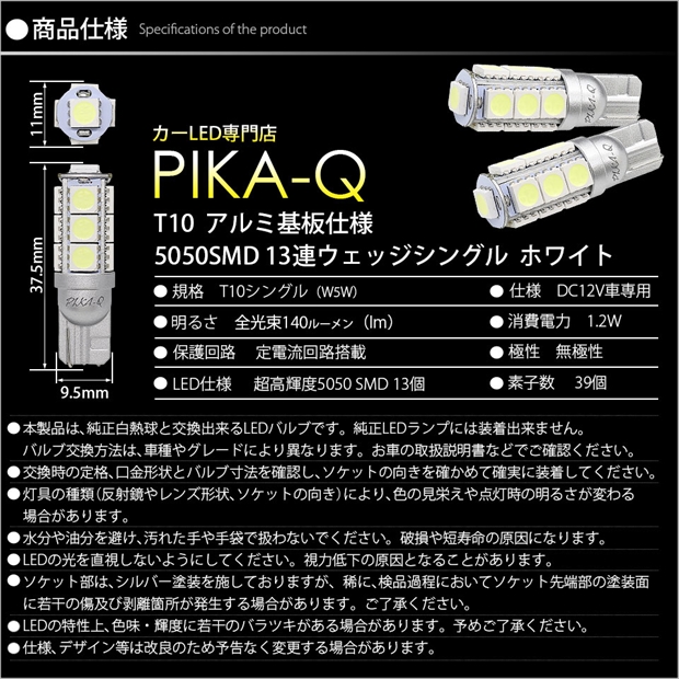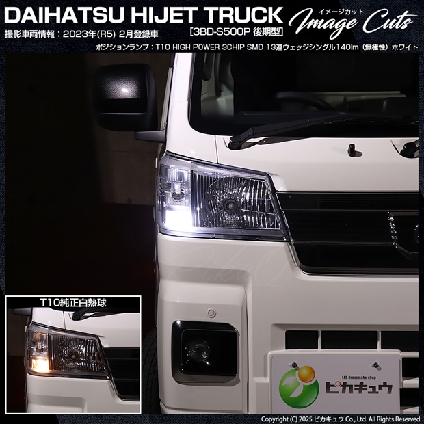 ピカキュウ,LED専門店,LEDバルブ,LED,SMD,T10,W5W,T10 HIGH POWER 3CHIP SMD 13連ウェッジシングル球,ホワイト,ポジションランプ,車幅灯,ダイハツ,DAIHATSU,ハイゼット,ハイゼットトラック,HIJET TRUCK,S500P,S510P