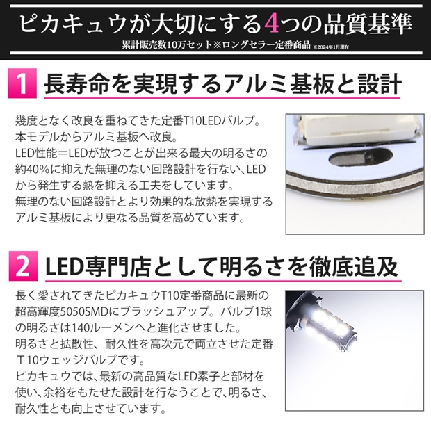 お客様に長く愛されてきたピカキュウの定番T10ウェッジバルブを最新超高輝度5050SMDにブラッシュアップしました