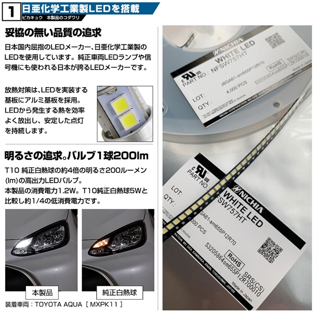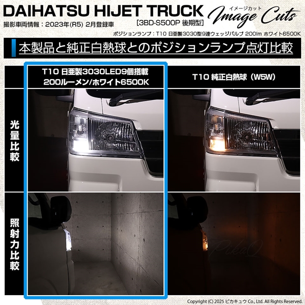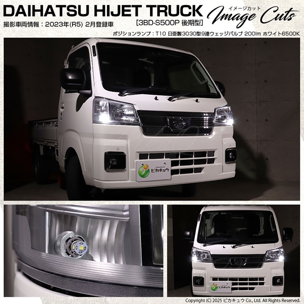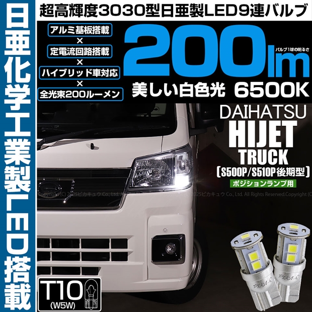 ピカキュウ,LED専門店,LEDバルブ,LED,SMD,T10,W5W,日亜化学工業,日亜,3030,ポジション,ライセンス,カーテシ,ウエルカム,爆光,200lm,200ルーメン,ダイハツ,DAIHATSU,ハイゼット,ハイゼットトラック,HIJET TRUCK,S500P,S510P