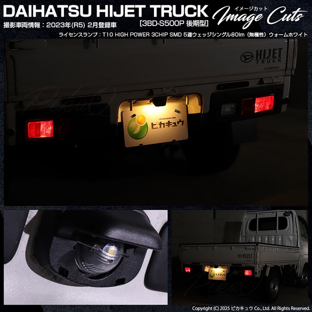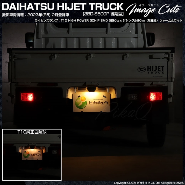 ピカキュウ,LED専門店,LEDバルブ,LED,SMD,T10,W5W,T10 HIGH POWER 3CHIP SMD 5連ウェッジシングル球,ウォームホワイト(電球色),ライセンスランプ,番号灯,ダイハツ,DAIHATSU,ハイゼット,ハイゼットトラック,HIJET TRUCK,S500P,S510P