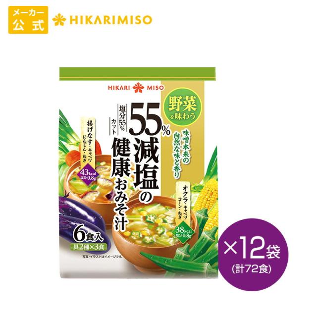 減塩味噌汁 55%減塩の健康おみそ汁 6食×12袋 計72食 揚げなす・オクラ まとめ買い 大容量 即席味噌汁 インスタント 常温保存 ヘルシー ひかり味噌