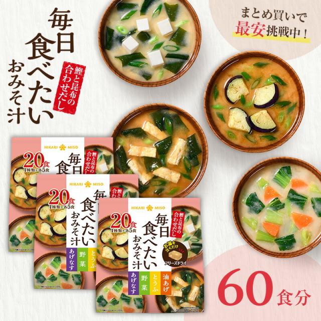 フリーズドライ味噌汁 毎日食べたいおみそ汁20食×3袋 計60食 まとめ買い インスタント 即席