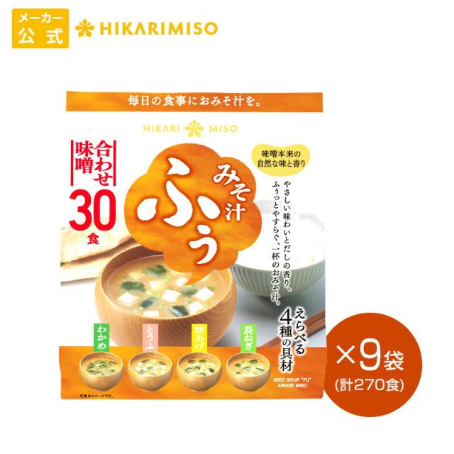 みそ汁 ふぅ 合わせ味噌 30食×9袋 まとめ買い ひかり味噌 味噌汁 おみそ汁 インスタント 即席みそ汁 ふぅっとやすらぐやさしい味わい えらべる4種の具材 わかめ・とうふ・油揚げ・長ねぎ