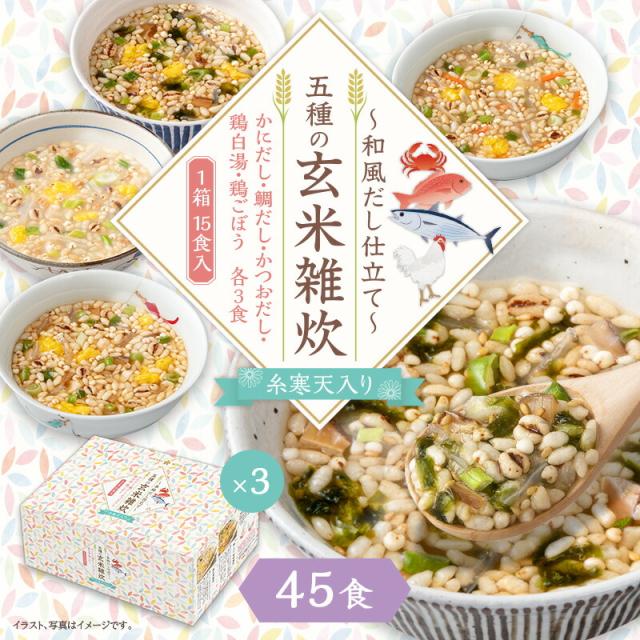 五種の玄米雑炊 15食 3箱45食セット 和風だし仕立て 糸寒天入り 5種の味 各3食入り 詰め合わせ インスタントスープ リゾット 食べるスープ おかゆ 茶漬け 減塩 置き換え 寒天雑炊 具だくさん ひかり味噌公式 即席