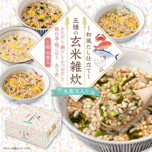 五種の玄米雑炊 15食 1箱 和風だし仕立て 糸寒天入り 5種の味 各3食入り 詰め合わせ インスタントスープ リゾット 食べるスープ おかゆ 茶漬け ローカロリー 減塩 介護食 寒天雑炊 即席 具だくさん 健康 低脂質 低カロリー ひかり味噌公式 送料別