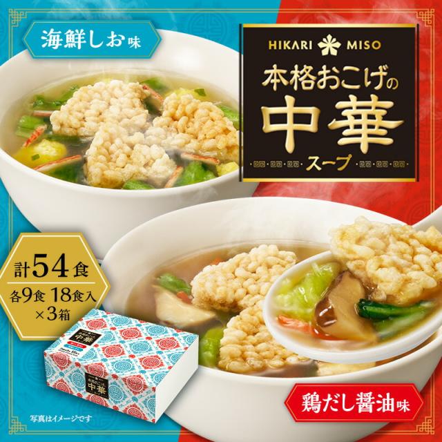 ひかり味噌 本格おこげの中華スープ 18食 ×3箱 鶏だし醤油 海鮮しお おこげせんべい入り 即席 インスタント スープ ランチ お弁当 備蓄