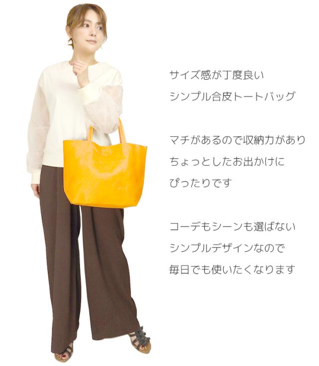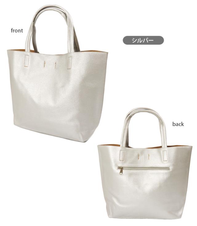 【送料無料】トートバッグ レディース 全5色 合成皮革 合皮 フェイクレザー シンプル 鞄 かばん 軽量 A4 黒 銀 紺 緑 黄 ブラック シルバー ネイビー エメラルドグリーン イエロー 2994