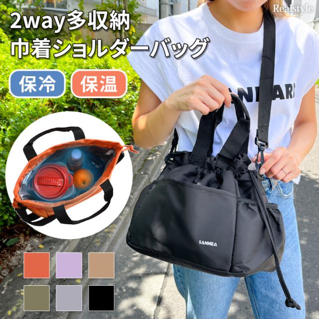 ポケットで多収納!保冷保温巾着ショルダーバッグ