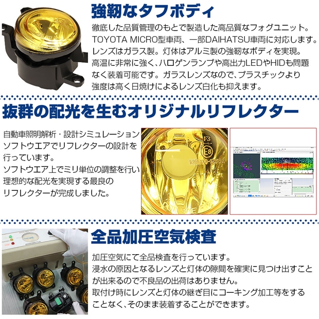 高い質感と耐久性を実現するEマーク認証イエローガラスレンズフォグユニット