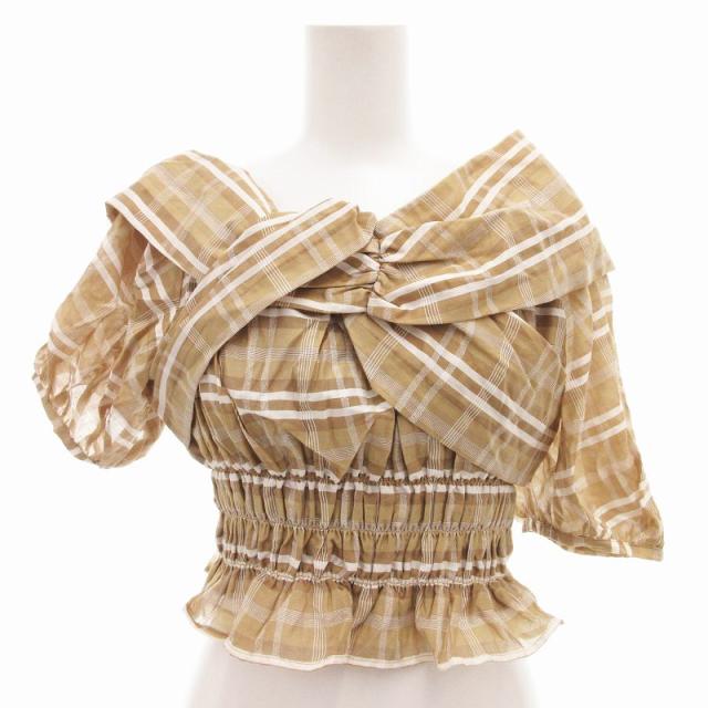 【中古】ダズリン dazzlin リボンワンショルパフブラウス リネン混 チェック 半袖 F カーキ グリーン 022440400101