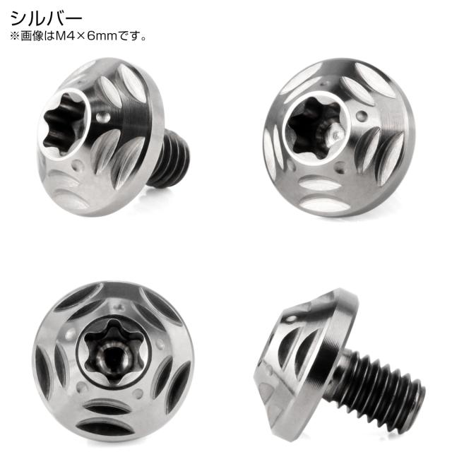チタンボルト M4×6mm P0.7 ボタンボルト フランジ付き トルクス穴 シルバー JA2547