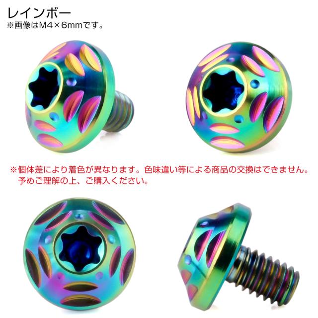 チタンボルト M4×6mm P0.7 ボタンボルト フランジ付き トルクス穴 レインボー JA2548