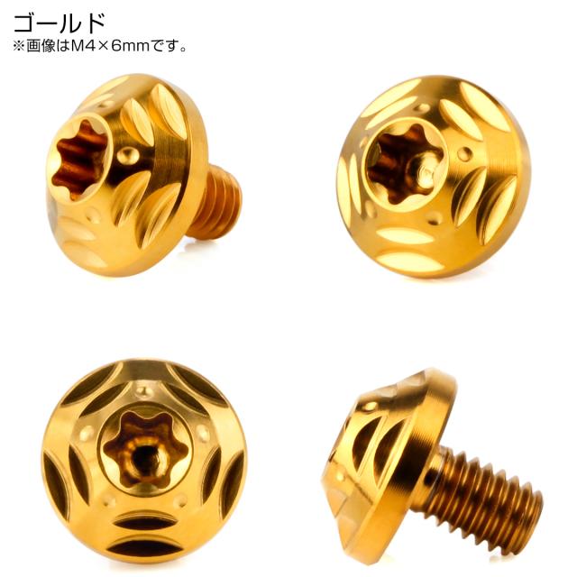 チタンボルト M4×6mm P0.7 ボタンボルト フランジ付き トルクス穴 ゴールド JA2549