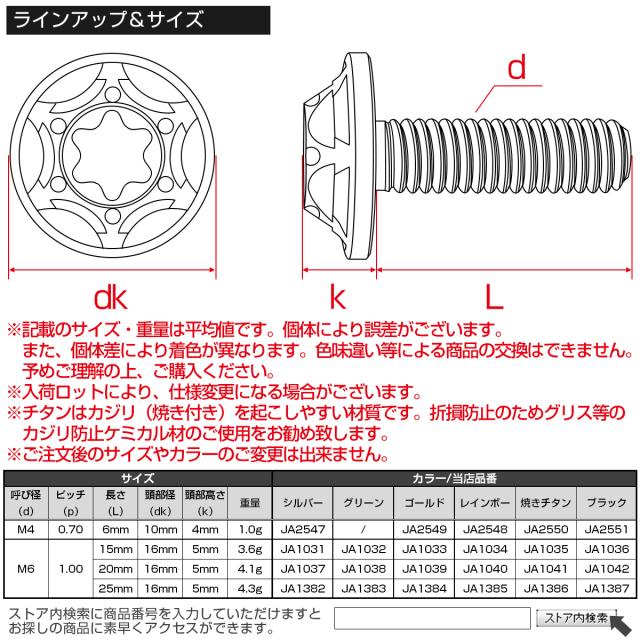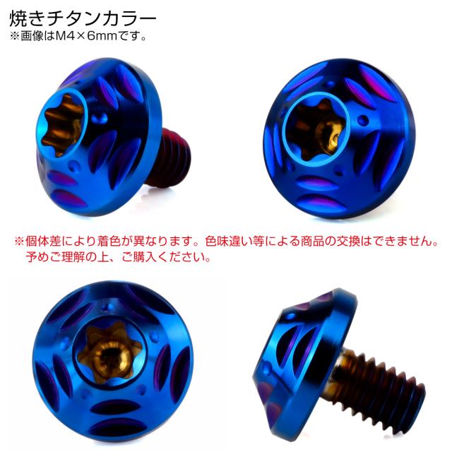 チタンボルト M4×6mm P0.7 ボタンボルト フランジ付き トルクス穴 焼きチタン JA2550