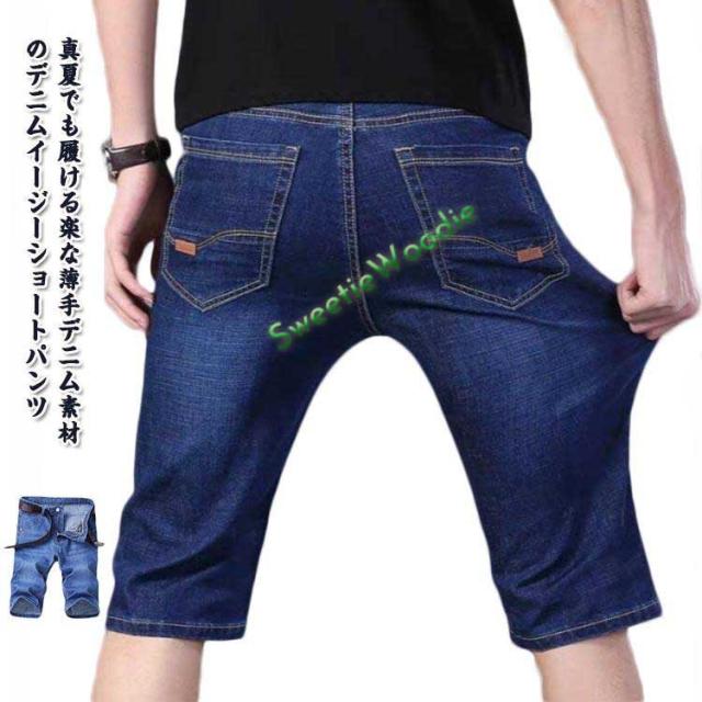 デニムパンツ ショートパンツ デニムパンツ 5分袖 メンズ 薄手 ストレッチ メンズ 男性 デニムショートパンツ ショート 大人 スリムフィット 無地