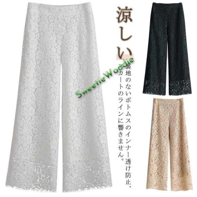 ワンピに重ねる インナー ペチコート 体型カバー パンツ 黒 ペチパンツ レディース レース 綿 マキシ 重ね着 ロング ワイド 下着 ボトムス ウエ