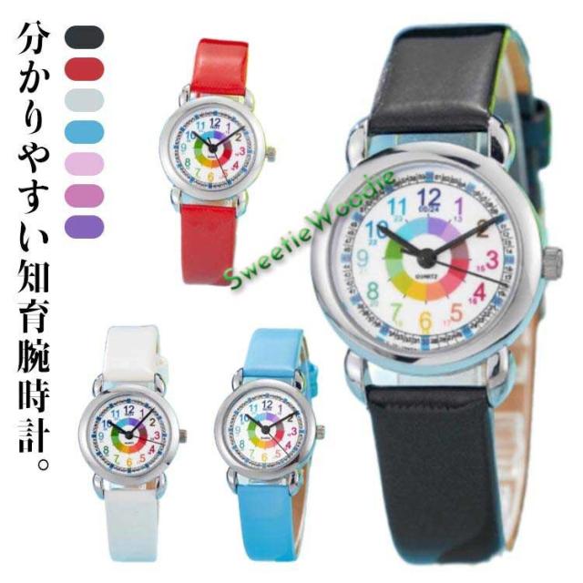 キッズ 腕時計 防水 アナログ 腕時計 分かりやすい 子供用 時間ごと色分け 女の子 男の子 知育腕時計 合皮 アナログ腕時計 リストウォッチ キッズ