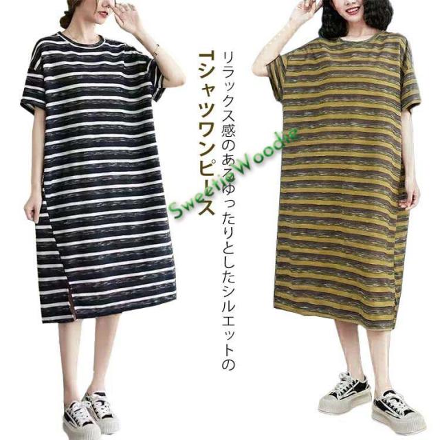 Tシャツワンピース 夏 ワンピース 半袖 レディース ロング Tシャツワンピ ロング 大きいサイズ 膝下 体型カバー カットソー ロング ゆったり カ