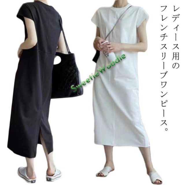 大人ワンピース マキシワンピース カットソー ディース 無地 ワンピース 半袖 春 夏 tシャツワンピース Tシャツワンピ 大人 フレンチスリーブ カ