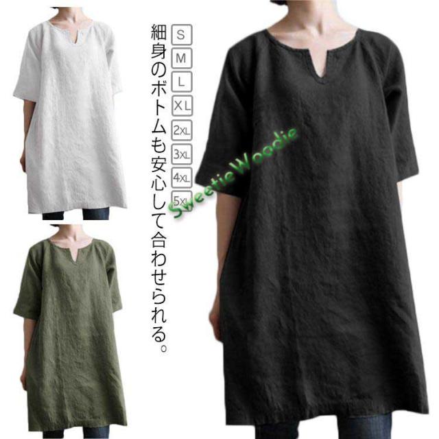 半袖 オーバーサイズ チュニックワンピース チュニック ロング リネン 夏 半袖 レディース 夏 トップス シャツ tシャツ Tシャツ 綿麻 チュニッ