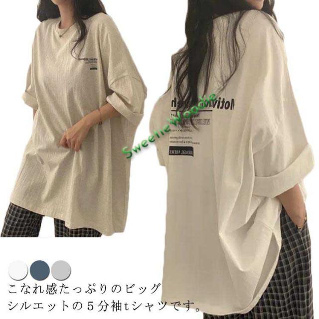 ビッグシルエット Tシャツ レディース 夏 半袖 5分袖 オーバーサイズ tシャツ ビッグtシャツ ゆったり 体型カバー 綿 コットン 韓国ファッシ
