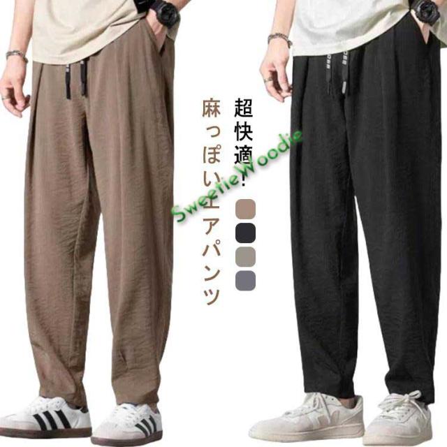 薄手 冷感パンツ 薄い 送料無料 夏パンツ メンズ テーパードパンツ サルエルパンツ ゴルフパンツ 送料無料 涼しい 調整紐 ウェストゴム アイスシル