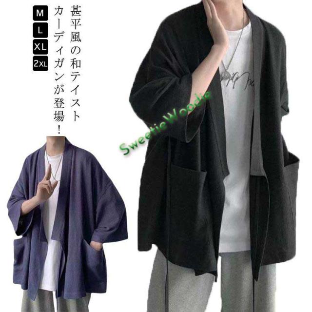 羽織 甚平風 甚平 メンズ 七分袖 羽織 カーディガン 無地 羽織り 和風 大きいサイズ 羽織 着物 浴衣 春 アウター ゆったり 花火大会 夏 夏