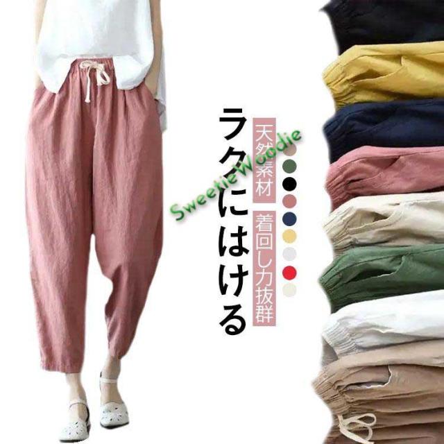 部屋着 夏 サルエルパンツ リネンパンツ レディース イージーパンツ カジュアルパンツ 九分丈 リラックス サルエルパンツ ウェストゴム パンツ 薄手