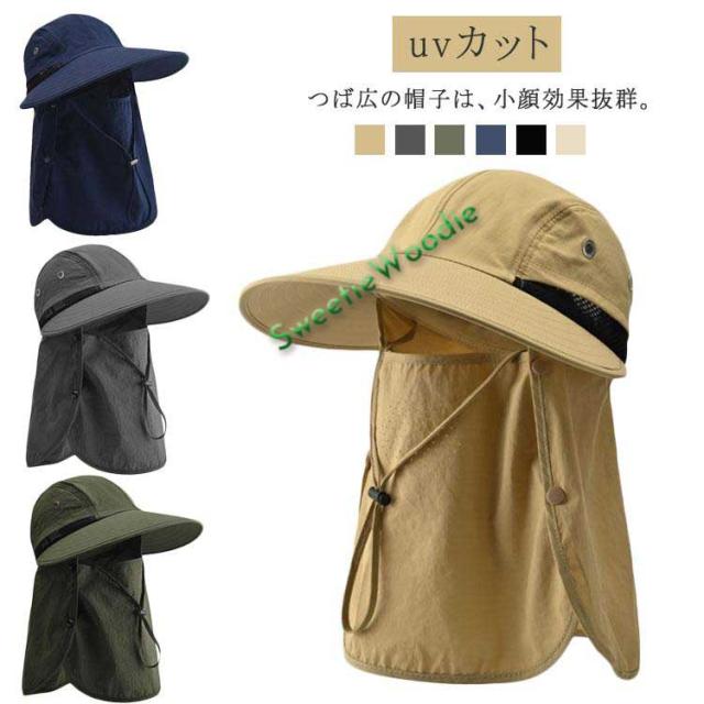 日よけ帽子 ハット フェイスマスク 小顔効果 つば広 レディース アウトドア uvカット 日よけ帽子 日焼け防止 サンバイザー 折りたたみ可能 紫外線