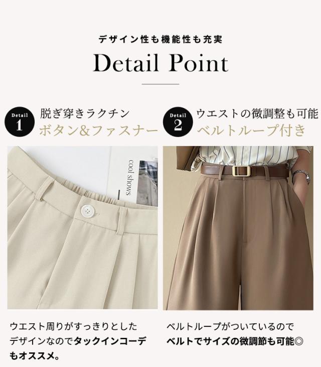 シンプルなパンツデザインなので、カジュアルなTシャツや綺麗めな