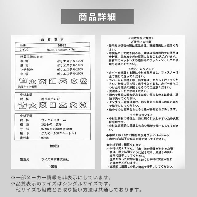 約97×195×7cm / シングル |