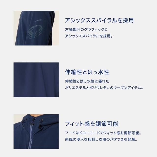 アシックス(asics)から、メンズの[はっ水ストレッチウーブンフーディー]です。