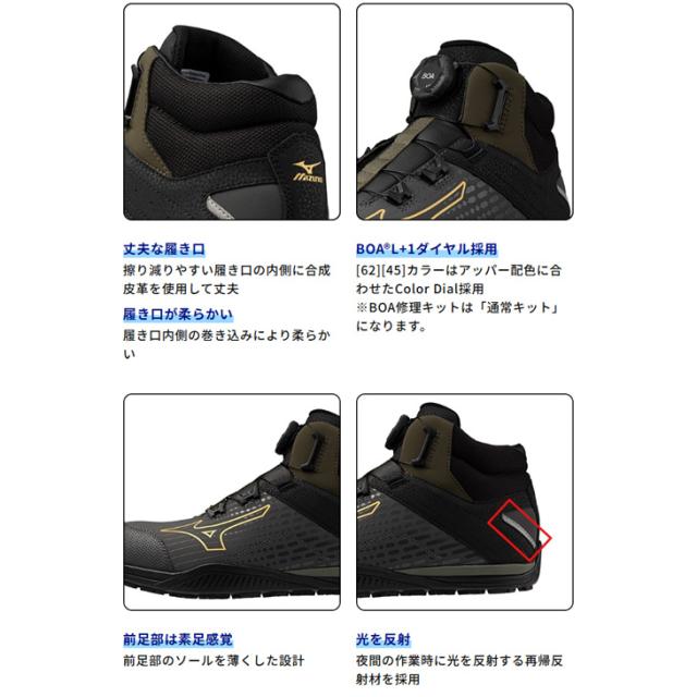 ミズノ 作業靴 メンズ 3E相当 ハイカット ワーキングシューズ mizuno オールマイティ TD2 81H BOA|ダイヤル式 衝撃吸収 防滑 男性 安全靴 プロテクティブスニーカー JSAA規格 A種 合格品 建設業 製造業 普通作業用 ブランド くつ/F1GA2510