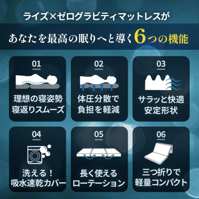 [keyword|高反発 2層 ハイブリッド マットレス セミダブル 120×195×7cm RISE Zero Gravity SLEEP MAGIC 7.0 ウレタン 硬め 点で支える 三つ折り スポーツ ベッド 敷布団 健康敷ふとん 体圧分散 腰痛 ライズ ゼログラビティ]