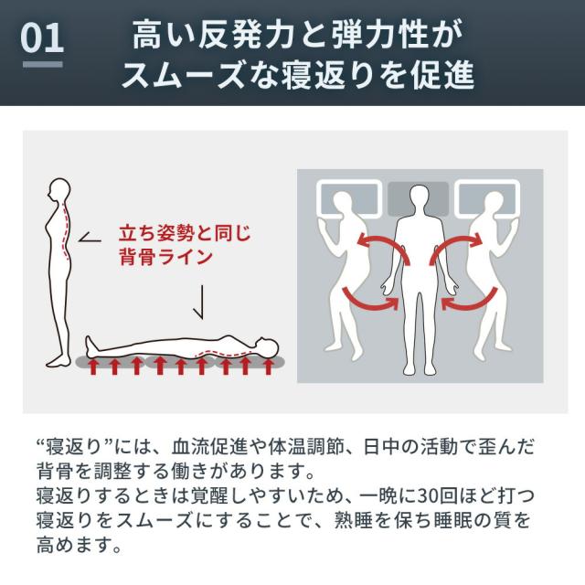 高反発素材が理想の寝姿勢をキープし、眠りの質を向上!